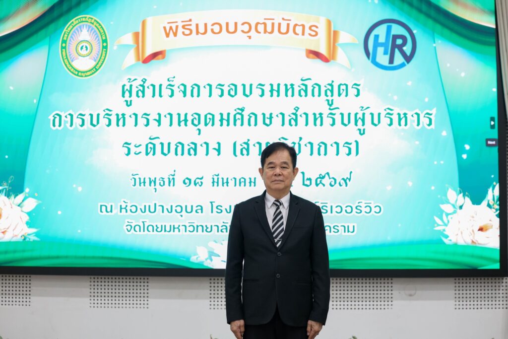 วันที่ 18 มีนาคม 2569 กองบริหารงานบุคคล มหาวิทยาลัยราชภัฏพิบูลสงคราม จัดพิธีปิด นำเสนอสรุปผลการอบรม พร้อมมอบวุฒิบัตรและประดับเข็มรุ่น ให้แก่ผู้ผ่านการอบรมหลักสูตรการบริหารงานอุดมศึกษาสำหรับผู้บริหารระดับกลาง (สายวิชาการ) จำนวน 45 ท่าน โดยได้รับเกียรติจาก ผู้ช่วยศาสตราจารย์ ดร.ชุมพล เสมาขันธ์ อธิการบดีมหาวิทยาลัยราชภัฏพิบูลสงคราม เป็นประธานกล่าวให้โอวาทและแสดงความยินดีแก่ผู้ผ่านการอบรม